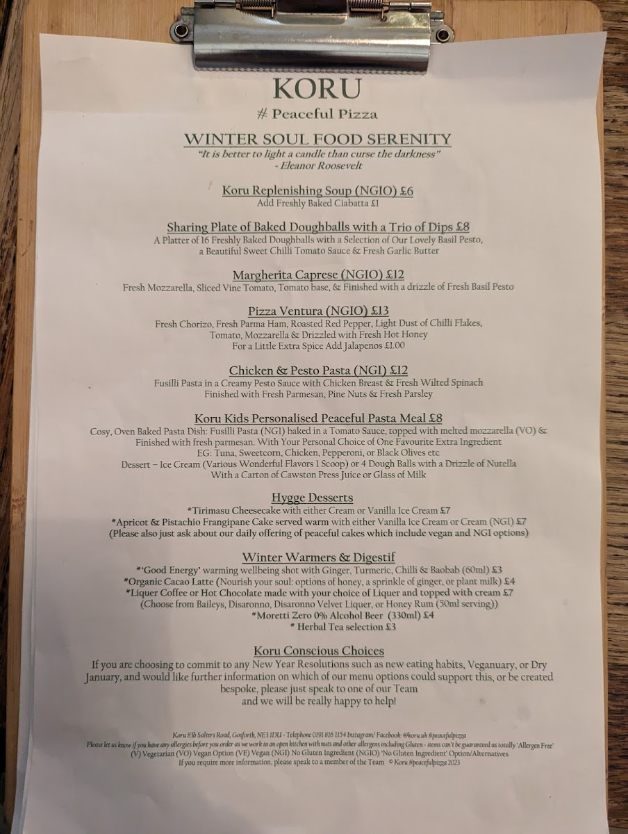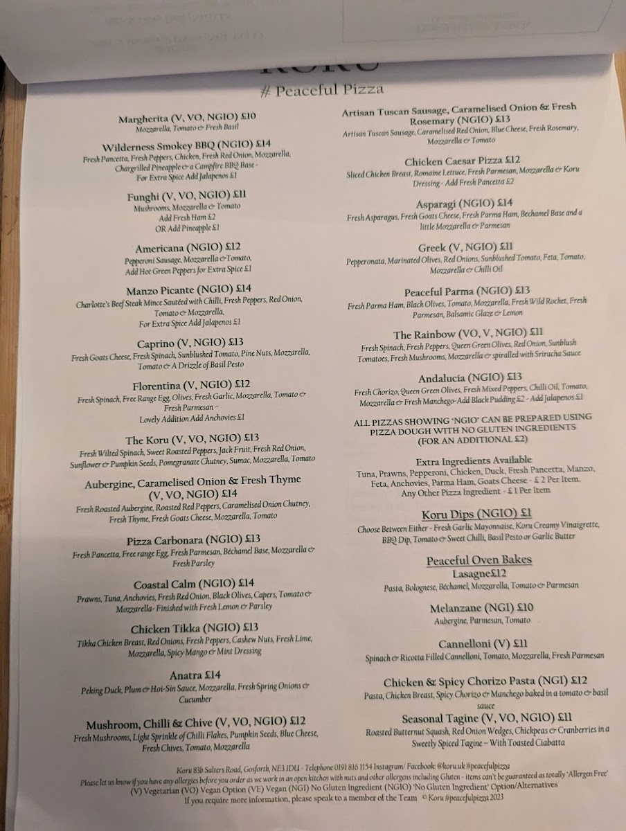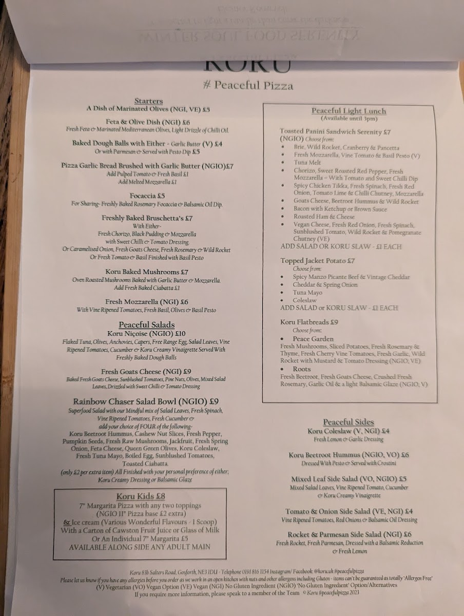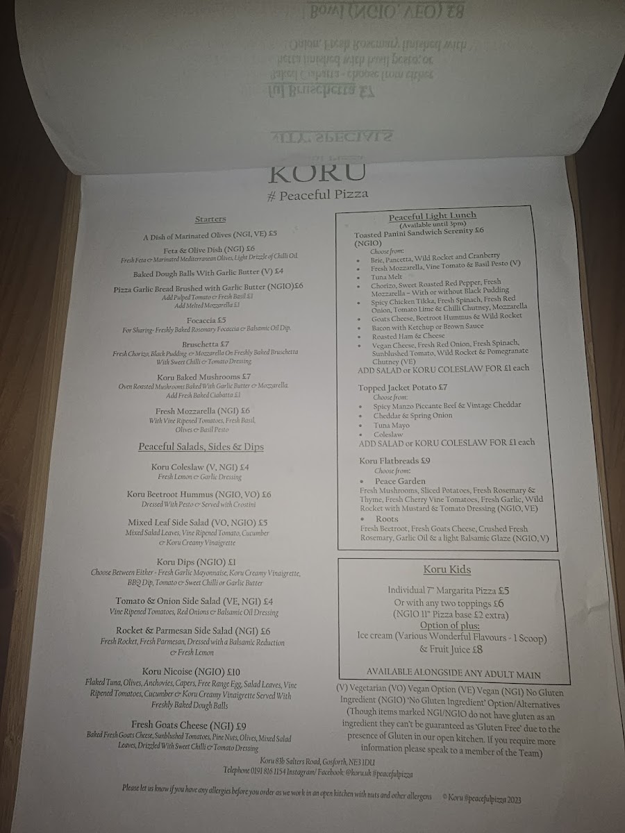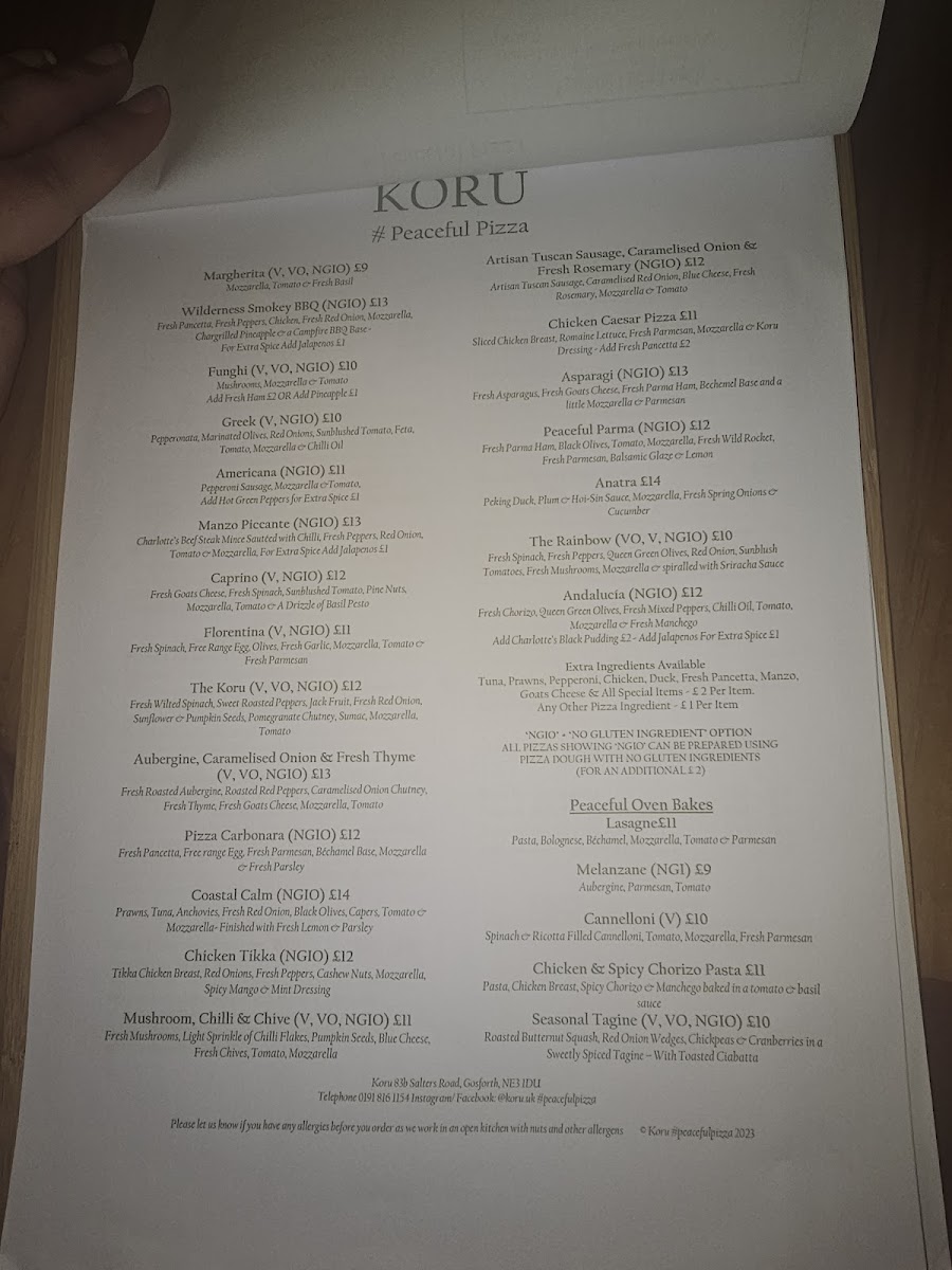 Located at 83b Salters Rd, Gosforth, Newcastle upon Tyne, Koru Peaceful Pizza offers an inviting and unique dining experience that combines great food with a relaxed atmosphere. This local gem stands out not only for its top-tier pizza but also for its commitment to providing a peaceful and enjoyable environment for guests.